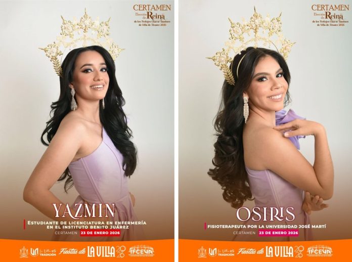 Las aspirantes al título de Reina de la Máxima Fiesta de las y lo Villalvarenses son Osiris Janice Flores Méndez, quien es egresada de la carrera de Fisioterapeuta, y Yazmín Zaragoza Montero, estudiante de la carrera de Enfermería.