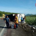 Y es que en este tramo carretero, cayó el contenedor de un trailer sobre una camioneta particular de color blanco, y aunque la camioneta quedó literalmente aplastada, el conductor salvo la vida y sin lesiones de gravedad.