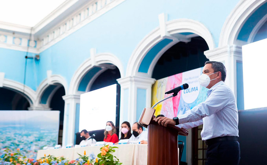 Christian Jorge Torres Ortiz Zermeño, rector de la Universidad de Colima, asistió este lunes por la tarde a la presentación del Plan Municipal de Desarrollo del Ayuntamiento de Colima 2021-2024, en el que participaron cuatro investigadores de esta casa de estudios.