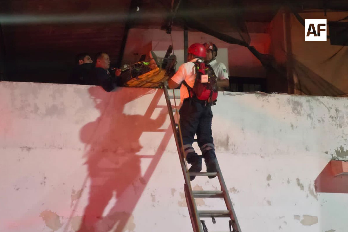 Al arribar al sitio, los cuerpos de auxilio localizaron al paciente con una marcada dificultad respiratoria, lo que requirió la activación inmediata de los protocolos de atención prehospitalaria. Debido a la complejidad estructural del inmueble y el diseño de las escaleras, el personal de la UEPC Colima tuvo que implementar maniobras técnicas especializadas para garantizar el descenso seguro del masculino.