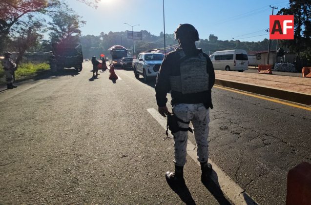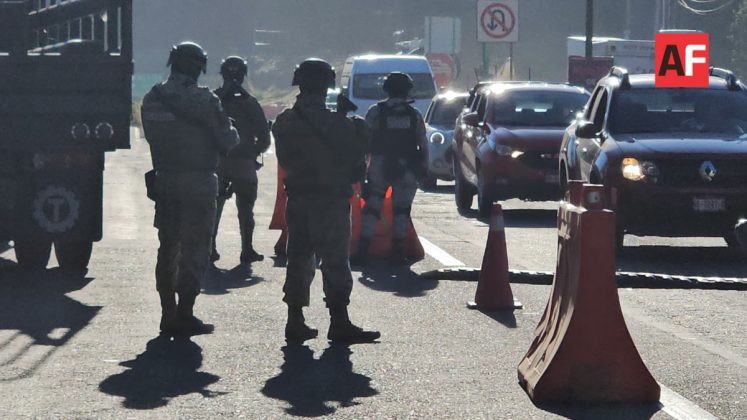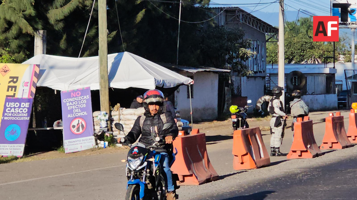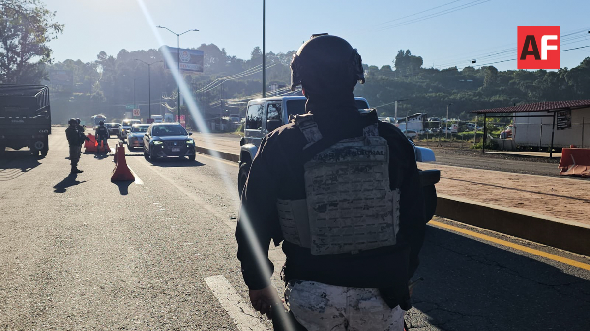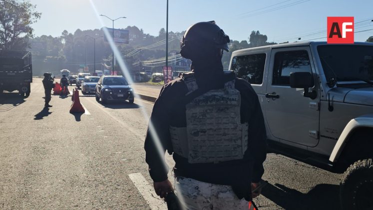 A un costado del camino, policías municipales y fuerzas federales coordinan filtros preventivos. Si un vehículo levanta sospechas, los agentes ordenan detenerlo, revisan su interior y verifican documentos. Las armas cortas y largas relucen bajo el sol, mientras las miradas uniformadas no pierden el horizonte.