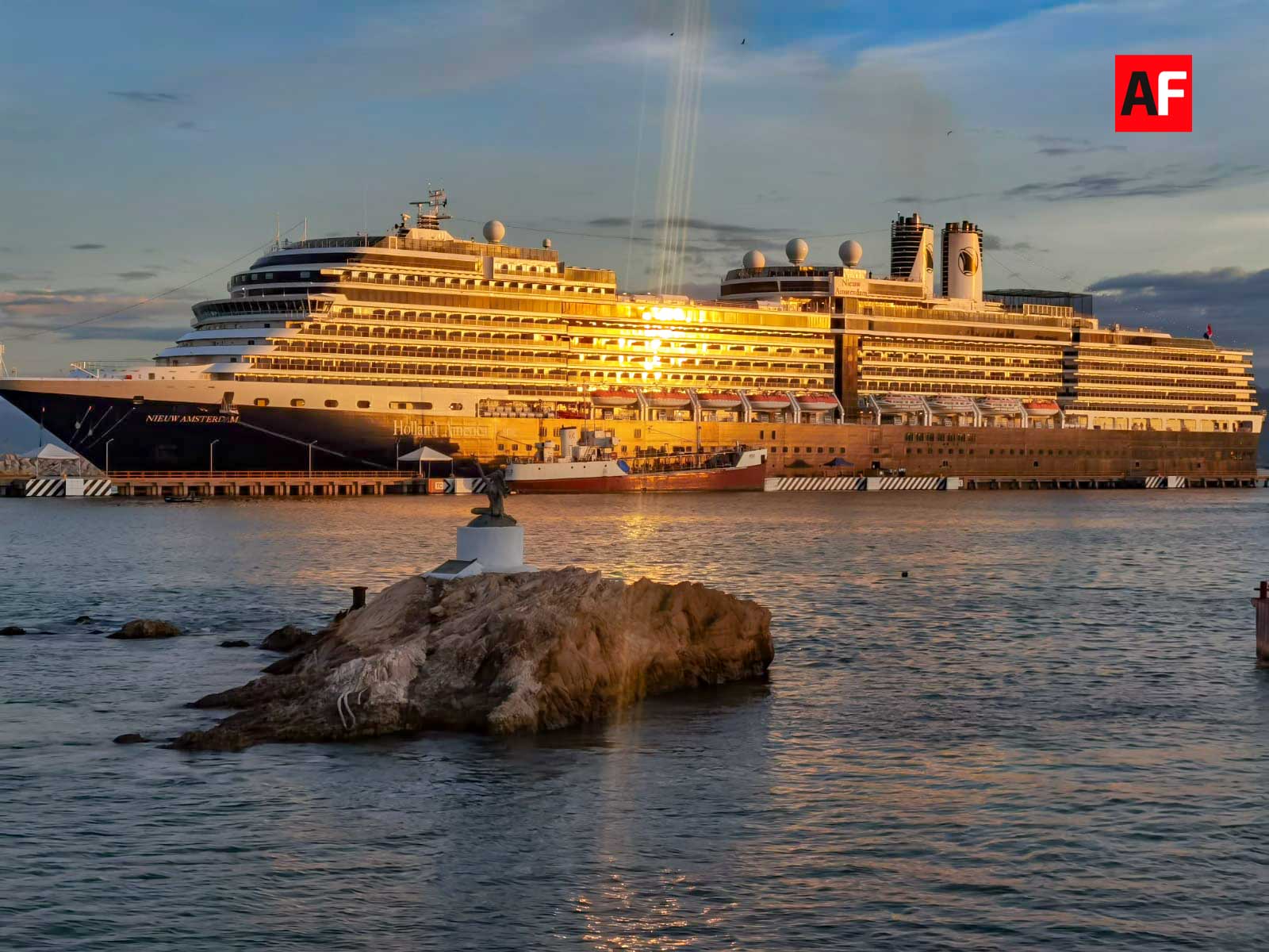 El Nieuw Amsterdam llegó a Manzanillo procedente de Seattle, Washington, Estados Unidos, y tras estar anclado 7 horas zarpará rumbo a Puerto Vallarta, Jalisco.