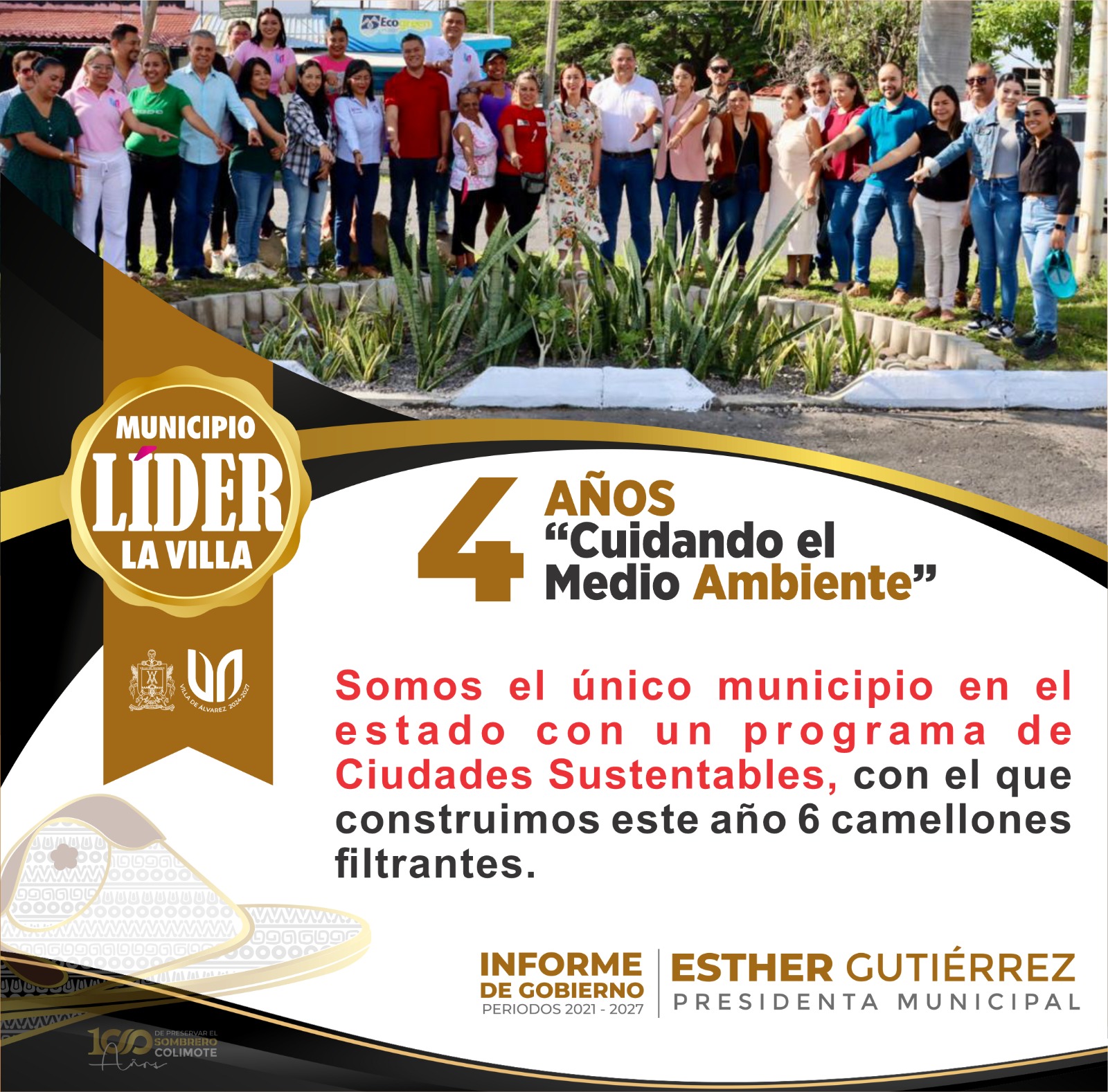 VILLA DE ÁLVAREZ.- La Presidenta Tey Gutiérrez Andrade destacó el liderazgo de Villa de Álvarez en materia de políticas sustentables y medio ambientales, al ser el único municipio en el estado que construye jardines de lluvia en camellones, herramienta de captación de agua pluvial para reabastecer los mantos freáticos.