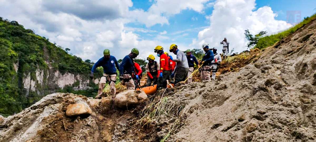Se presume que la mujer viajaba en su vehículo al momento que ocurrió el derrumbe en carretera federal 54, misma que el día de ayer sufrió un desplazamiento de tierra en el kilómetro 39.