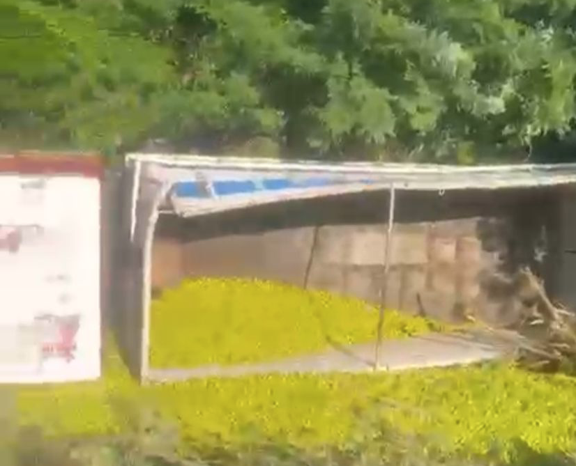 Los hechos ocurrieron poco después de las 16:00 horas, a la altura de la zona conocida como El Columpio, donde por razones aún no precisadas el vehículo de carga terminó volcado por razones aún no precisadas.