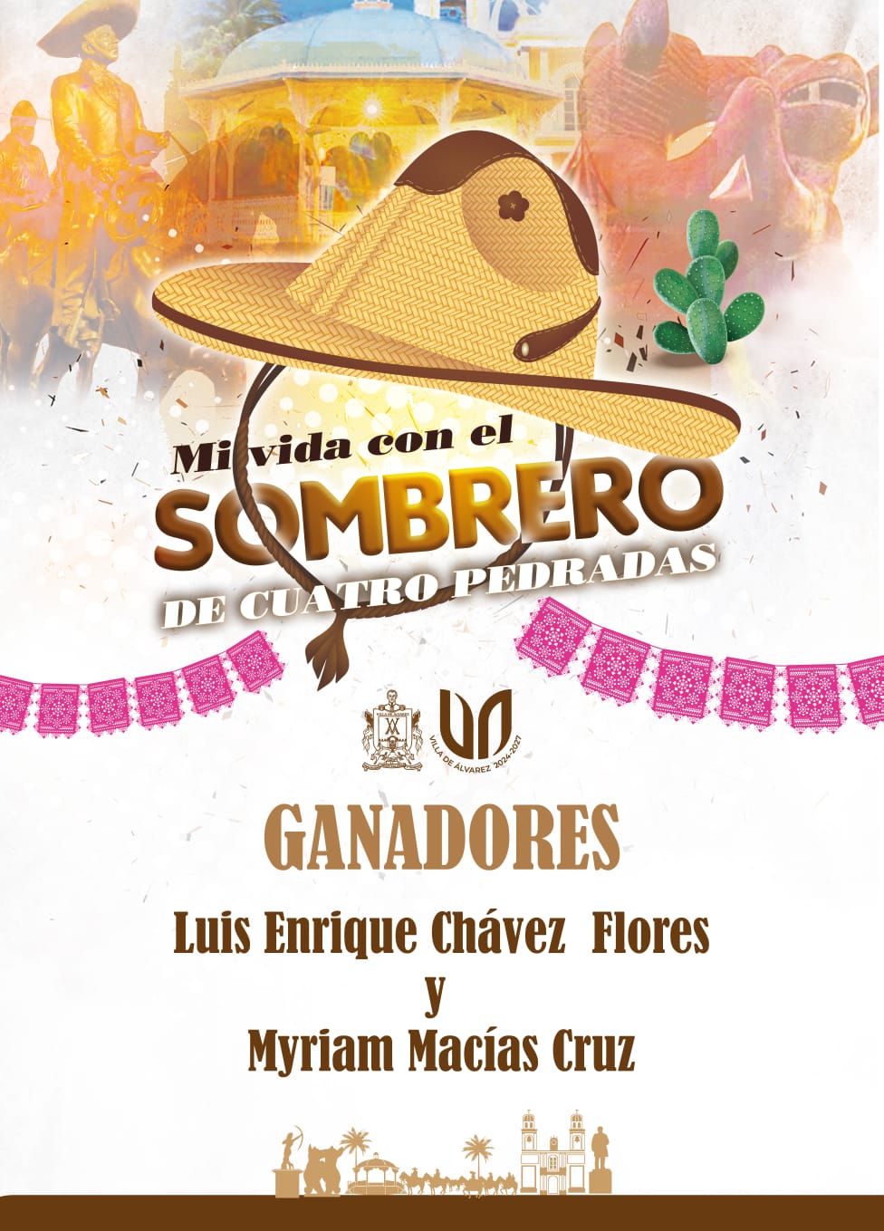 VILLA DE ÁLVAREZ.- Por evocar con sus testimonios la tradición del uso del Sombrero Colimote de Cuatro Pedradas, Luis Enrique Chávez Flores y Myriam Macías Cruz fueron los ganadores del concurso «Mi Vida con el Sombrero Colimote».