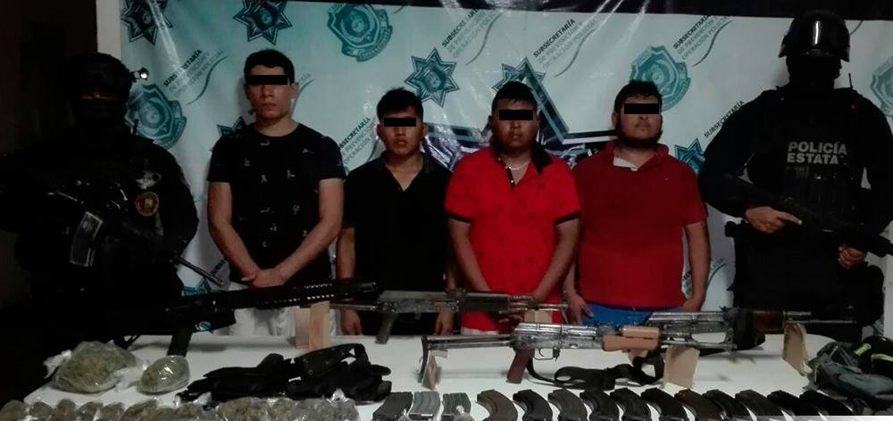 Los sujetos fueron asegurarodos en una céntrica calle de Zihuatanejo, cuando consumían bebidas embriagantes en la vía pública, mismos que al momento de ser detenidos, portaban armas de uso exclusivo de las Fuerzas Armadas, droga y equipo táctico diverso.