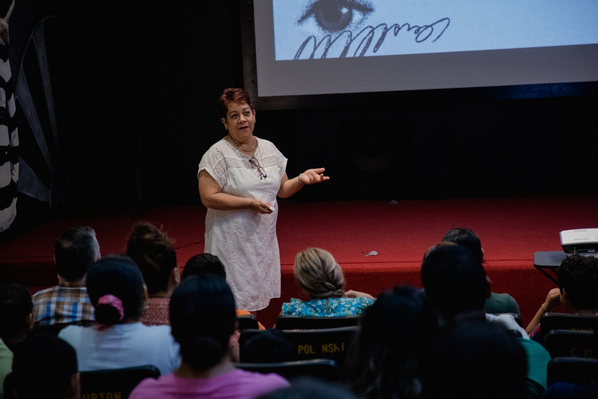 Durante la primera sesión, las y los integrantes de la agrupación universitaria, junto con sus familias y su director, Gabriel de Jesús Frausto Zamora, participaron en la charla “Alrededor del arte”, impartida por la maestra en artes Blanca Cilia Reyes, responsable del programa de Educación Artística de la oficina de Difusión Cultural.