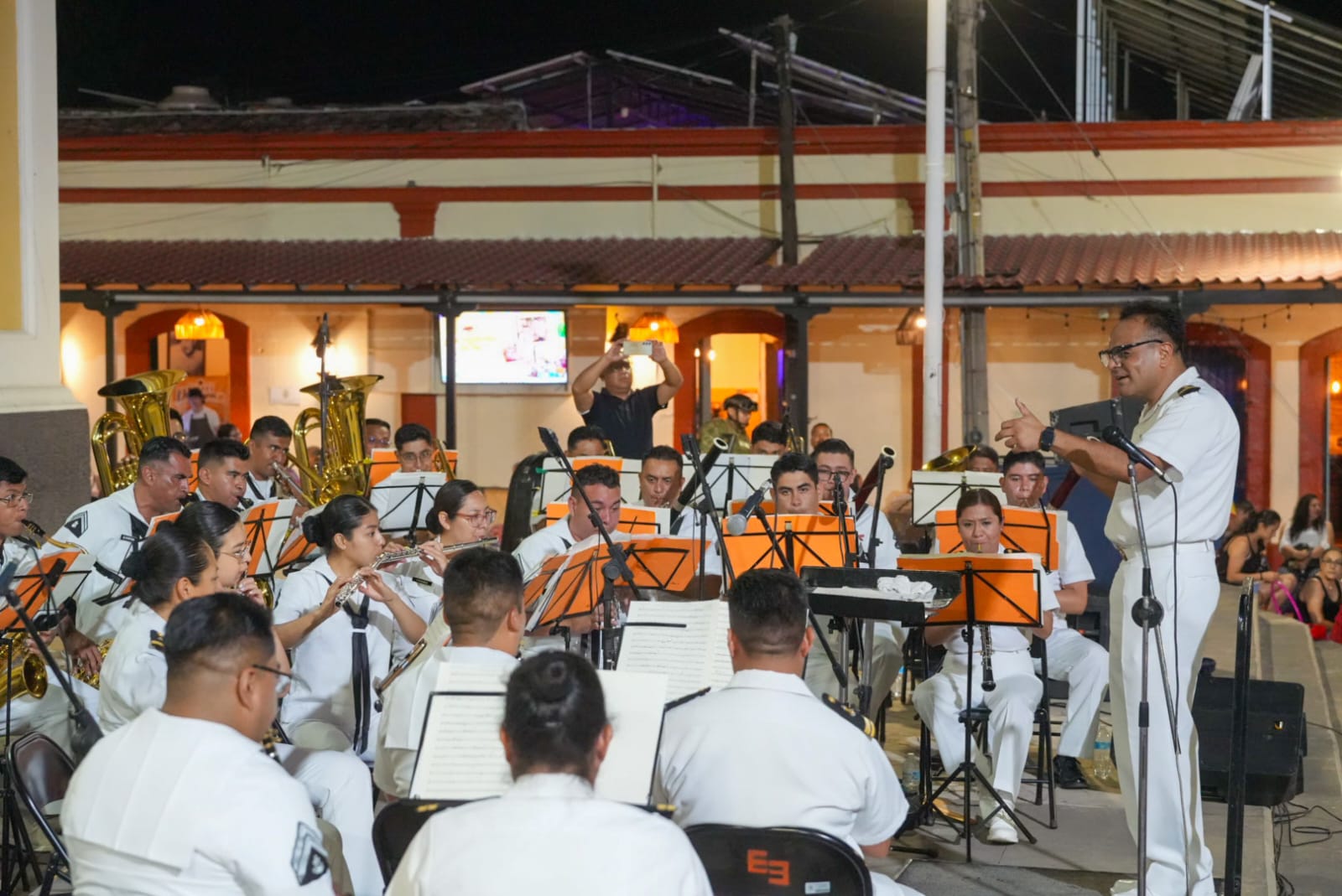VILLA DE ÁLVAREZ.- La presentación de la Banda Sinfónica de la Secretaría de Marina en el Jardín Independencia fue todo un éxito, pues congregó a cientos de villalvarenses que disfrutaron de más de una hora de música, en un espectáculo que emocionó al público asistente.