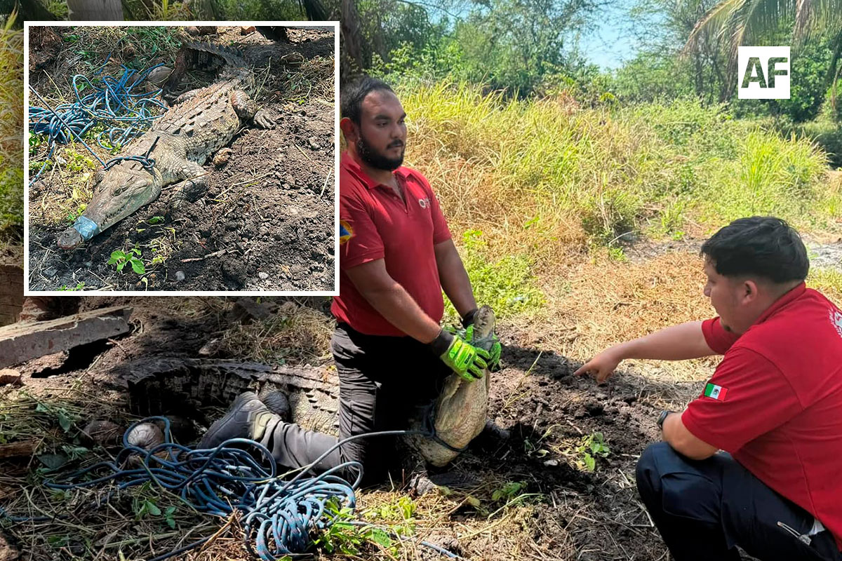 ARMERÍA.- Elementos de Protección Civil de Armería llevaron a cabo este miércoles un rescate tras atender el reporte de un cocodrilo que había caído en una noria ubicada en una zona fangosa cercana a la laguna de Cuyutlán.