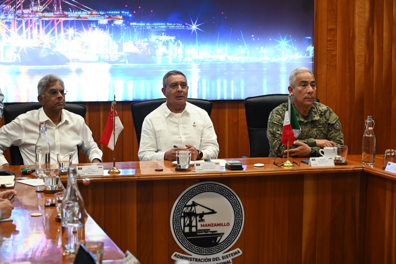 Manzanillo.- Como parte de la estrategia para fomentar la cooperación internacional, atraer inversiones y proyectos de colaboración, personal de la Administración del Sistema Portuario Nacional (ASIPONA) Manzanillo, encabezado por su director general, Almirante José Ignacio Moreno Díaz, recibió el viernes 24 de abril a Gerald Singham, Embajador de Singapur en México, y a su cuerpo diplomático.