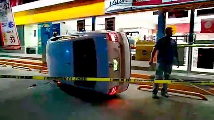 Los afectados -una mujer y un hombre- viajaban en la unidad particular, el cual además terminó parcialmente volcado en el estacionamiento de una tienda de conveniencia de las inmediaciones.