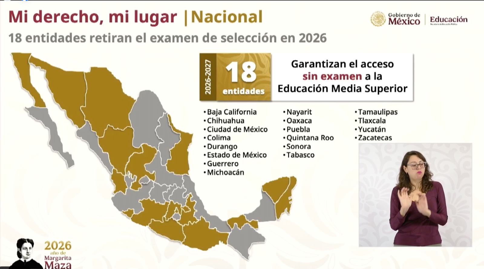 CDMX.- A partir de este año 2026, en el estado de Colima se garantiza el acceso universal de todas y todos los estudiantes que egresan de secundaria a un espacio en el nivel medio superior (bachillerato), como parte de la estrategia nacional ‘Mi derecho, mi lugar’, que impulsa la presidenta de México, Claudia Sheinbaum Pardo a través de la Secretaría de Educación Pública (SEP), para asegurar el ingreso equitativo a preparatoria, destacó la Secretaría de Educación y Cultura del Gobierno del Estado de Colima.