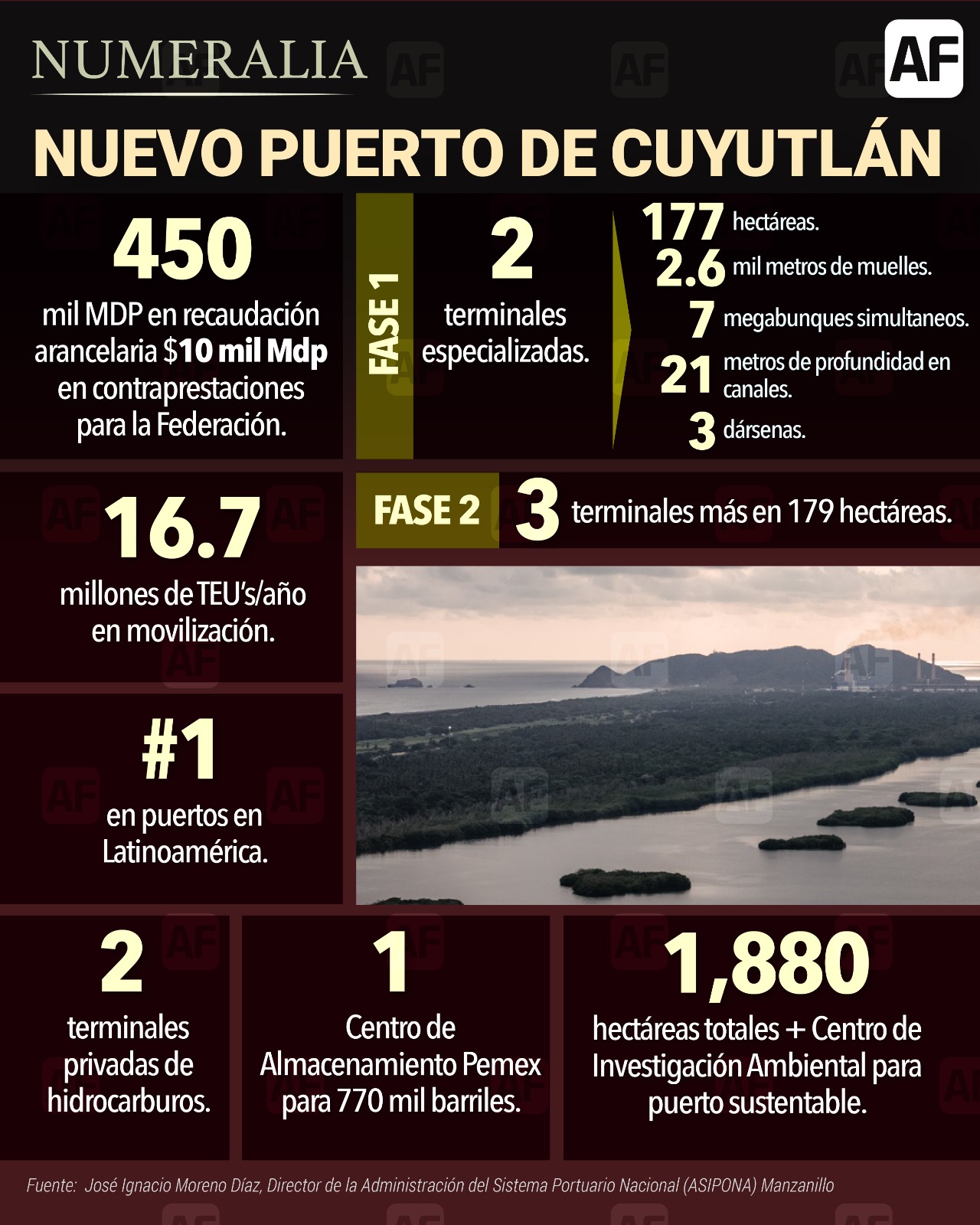 También detalló que Puerto Cuyutlán contaría con canales de navegación de hasta 21 metros de profundidad y 3 dársenas de maniobras.