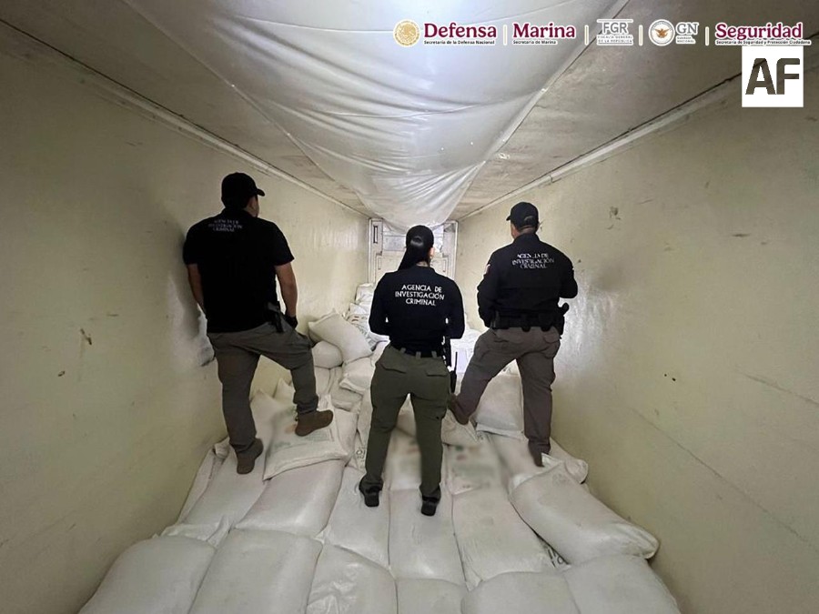 En la carretera Internacional México 15, a la altura del kilómetro 49 + 250, tramo Los Mochis – Navojoa, en el municipio de Ahome, los agentes de seguridad le marcaron el alto al conductor de un tractocamión acoplado a una caja refrigerada y, tras efectuar una inspección detallada de la unidad, hallaron siete costales que contenían la droga.