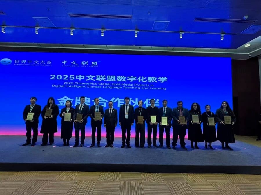 Aaron Radillo informó que este mes noviembre participó en la World Chinese Language Conference, organizada por la Alianza Global del Idioma Chino y Continental Han Feng Network Technology (Beijing) Co., Ltd., donde la institución recibió el premio Socio de Medalla de Oro por su destacada implementación del programa.
