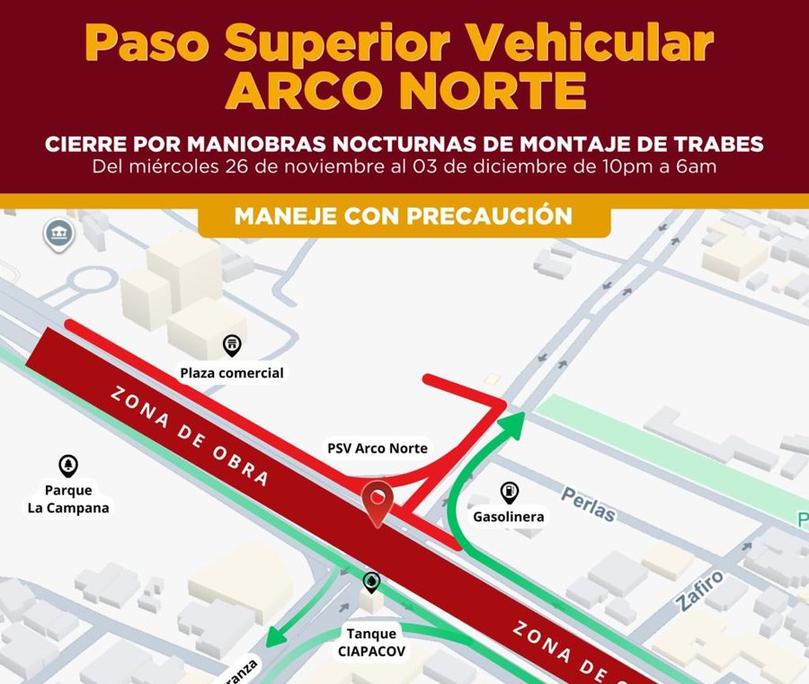 Este miércoles inician cierres nocturnos temporales en la construcción del Arco Norte