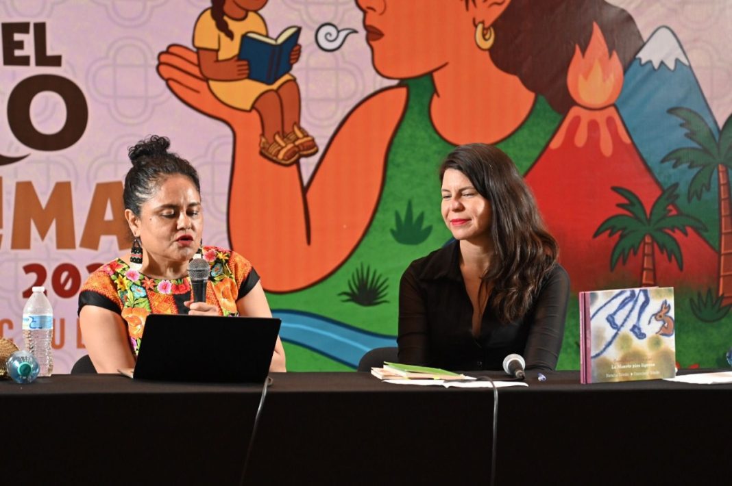 Acompañada por la poeta colimense Indira Isel Torres Crux, Natalia compartió algunos fragmentos de su libro, dándole lectura en español y zapoteco. Niñas y niños tuvieron oportunidad de aprender algunas palabras y expresiones en dicha lengua indígena y compartieron con la escritora divertidas anécdotas acerca del momento de ir al baño.