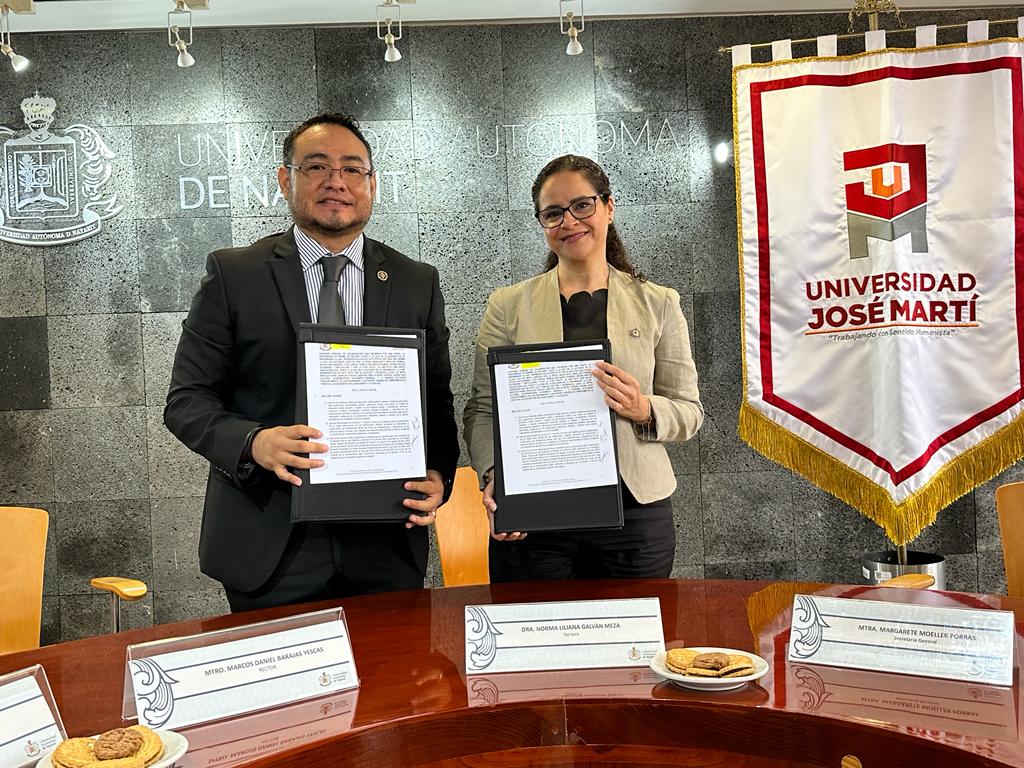 Por parte de la delegación de la Universidad José Martí, esta visita la encabezó el Rector de la UJM, Mtro. Marcos Daniel Barajas Yescas; este fue acompañado por la Coordinadora General Académica, Mtra. Aurora Cruz Alcaraz; el Director de la licenciatura en Medicina, Dr. Ramsés Rodrigo Castañeda; la Coordinadora Académica de la licenciatura en Medicina, Mtra. Yuridia de Jesús Radilla De Nova; la Directora de la licenciatura en Fisioterapia, Mtra. Paola Montes Guizarnotegui; el Dr. Alejandro Pineda Méndez y la Dra. Claudia Liliana Peña López, Asesores del documento curricular de la licenciatura en Odontología, y el Responsable del área de Comunicación, Lic. Jorge Orozco Sanmiguel, mismos que se comprometieron adoptar las medidas necesarias para establecer el enlace y la comunicación requerida para el seguimiento a los acuerdos del convenio asignado. Dicho convenio trae consigo una colaboración de alianza para fortalecer la gestión educativa.