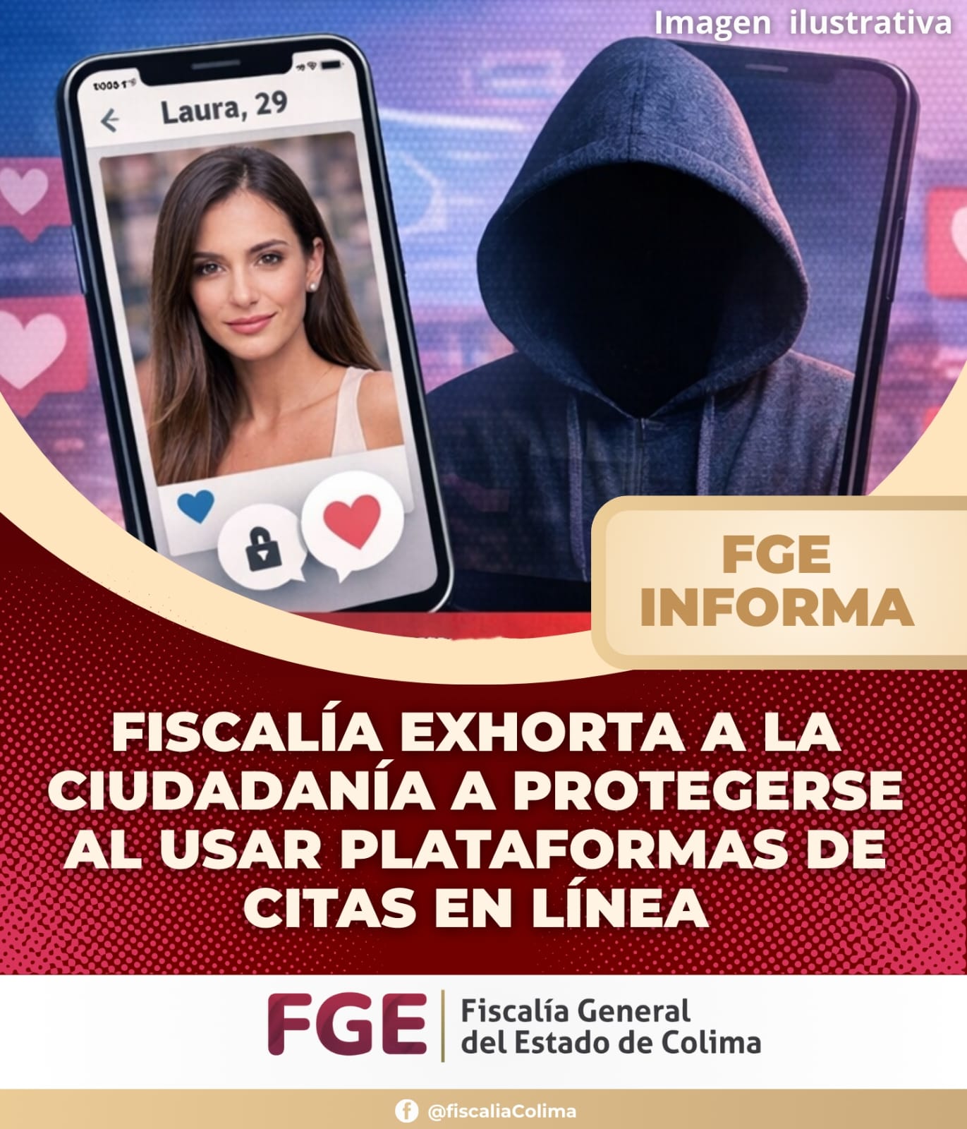 COLIMA.- La Fiscalía General del Estado (FGE) informa a la ciudadanía sobre los riesgos asociados al uso de aplicaciones digitales de citas y exhorta a adoptar medidas de autoprotección para prevenir la comisión de delitos relacionados con el engaño, el fraude y la afectación a la integridad personal.