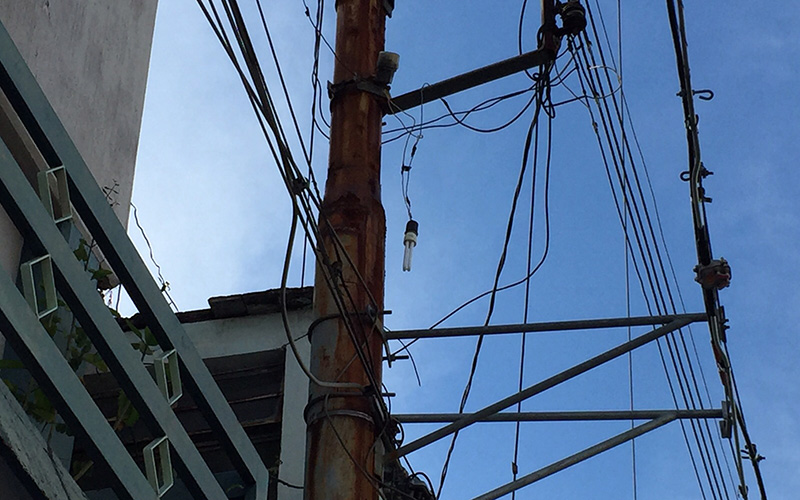 Colima.- Vecinos de la calle Nicolas Bravo a la altura del número 82 en el centro de la ciudad, enviaron esta imagen en donde se puede ver un foco que hace la función de alumbrado público, luego de que la lámpara cayera por su alto grado de oxidación.