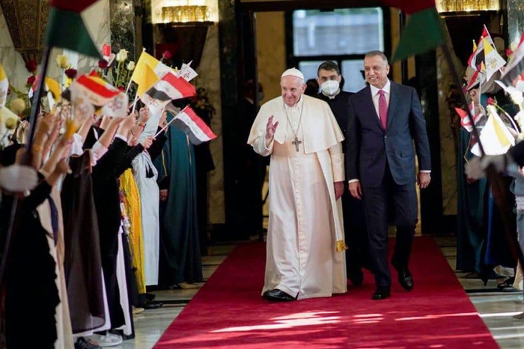 El Pontífice fue recibido por el primer ministro iraquí, Mustafa al Kazemi, en el aeropuerto de Bagdad, ciudad donde empezará una visita de tres días que seguirá de la capital a Mosul, Erbil, Najaf y Qaraqosh.