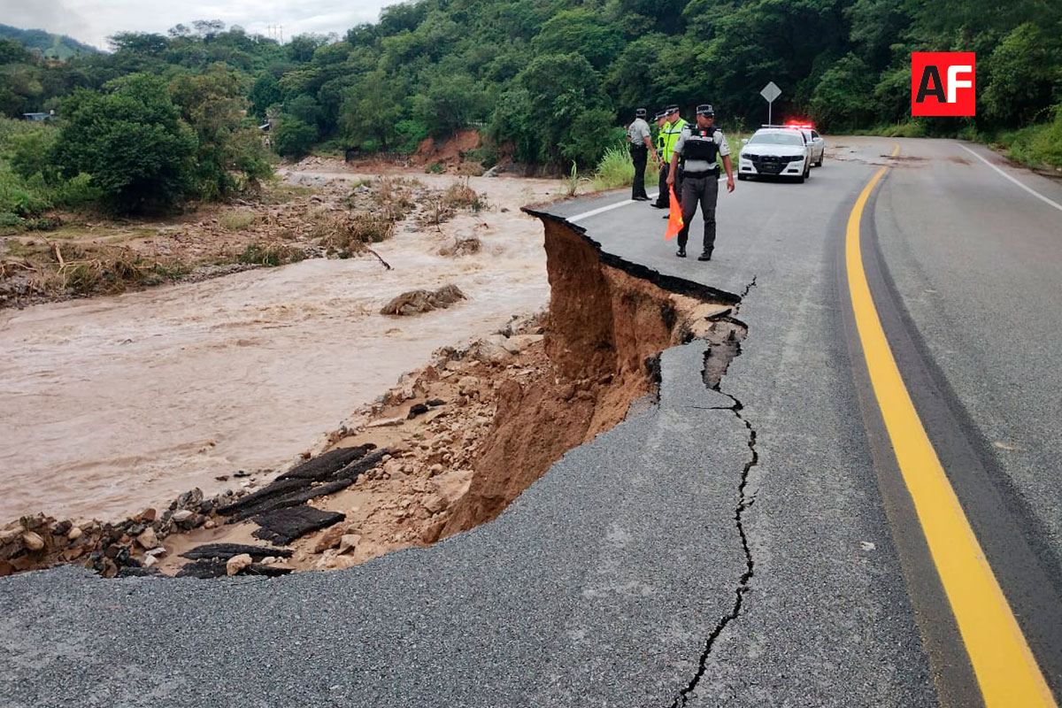 Personal de la Dirección de Seguridad en Carreteras e Instalaciones de la Guardia nacional mantiene los desvíos a la circulación vehicular y el control de tránsito, a fin de permitir el trabajo del personal y maquinaria para liberar en su totalidad las vialidades obstruidas por deslaves, así como la reparación de los tramos donde se registraron socavones o inundaciones.