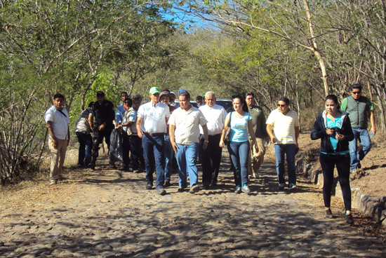 El séquito tuvo que seguir el ejemplo y aunque era de bajada debían agacharse de vez en cuando. El coordinador de Comunicación Social, René González Chávez; el secretario de Salud, Agustín Lara Esqueda y el secretario de Desarrollo Urbano, Alejandro Torres Contreras apoyaron al mandatario estatal en la tarea, aunque los zapatos de vestir hicieran de las suyas.
