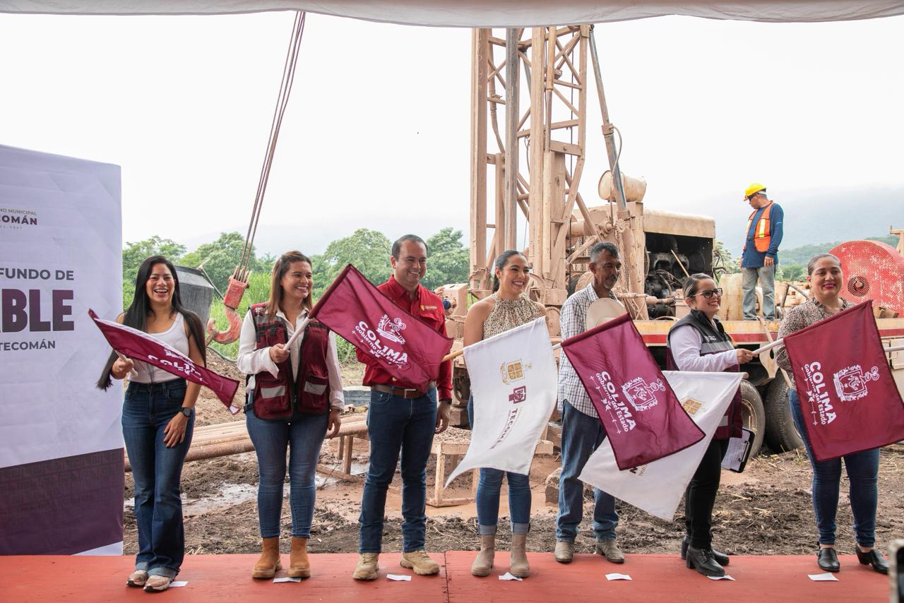 COLIMA.- La gobernadora de Colima, Indira Vizcaíno Silva, encabezó este jueves el banderazo de arranque oficial a la perforación de un pozo profundo de agua en la localidad de Tecolapa, en Tecomán, con inversión de cuatro millones de pesos, 2 mdp del Programa de Agua Potable, Drenaje y Tratamiento de la Comisión Nacional del Agua (Conagua) y 2 mdp del Fondo de Aportaciones para la Infraestructura Social Municipal.