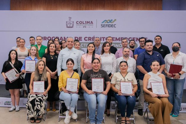 COLIMA.- La gobernadora de Colima, Indira Vizcaíno Silva, entregó este lunes créditos de tasa cero por cuatro meses de gracia de hasta 200 mil pesos, pensados específicamente para capital de trabajo, a través del Programa Emergente de Recuperación Económica, a empresas que han enfrentado dificultades por las obras de construcción del paso superior vehicular ‘Arco Norte’ en el municipio de Colima; dijo que su gobierno prevé que estos créditos puedan aligerar las dificultades durante estos meses de obra, mantener a su plantilla laboral y prepararse para una etapa posterior en la que puedan crecer su negocio.