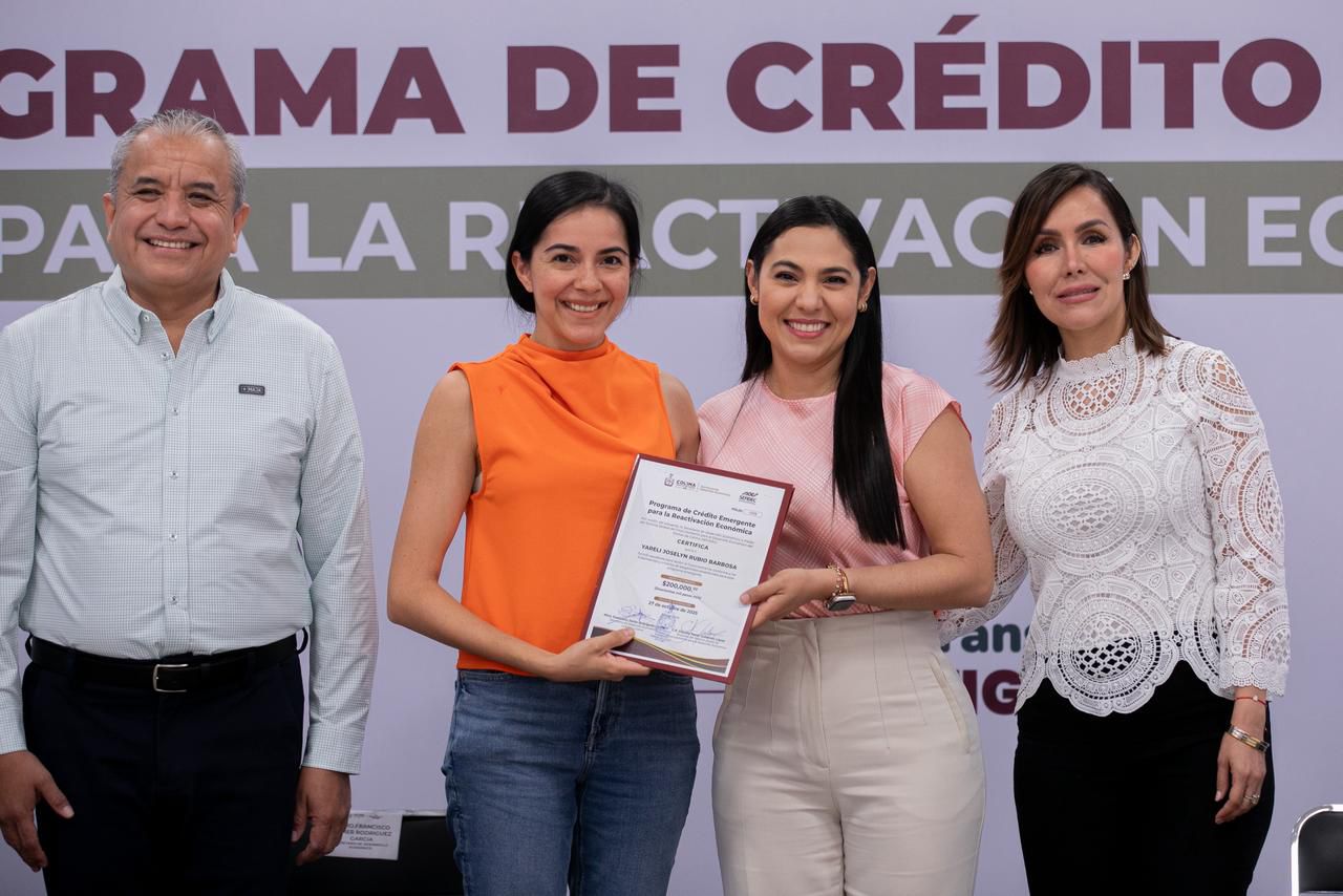 COLIMA.- La gobernadora de Colima, Indira Vizcaíno Silva, entregó este lunes créditos de tasa cero por cuatro meses de gracia de hasta 200 mil pesos, pensados específicamente para capital de trabajo, a través del Programa Emergente de Recuperación Económica, a empresas que han enfrentado dificultades por las obras de construcción del paso superior vehicular ‘Arco Norte’ en el municipio de Colima; dijo que su gobierno prevé que estos créditos puedan aligerar las dificultades durante estos meses de obra, mantener a su plantilla laboral y prepararse para una etapa posterior en la que puedan crecer su negocio.
