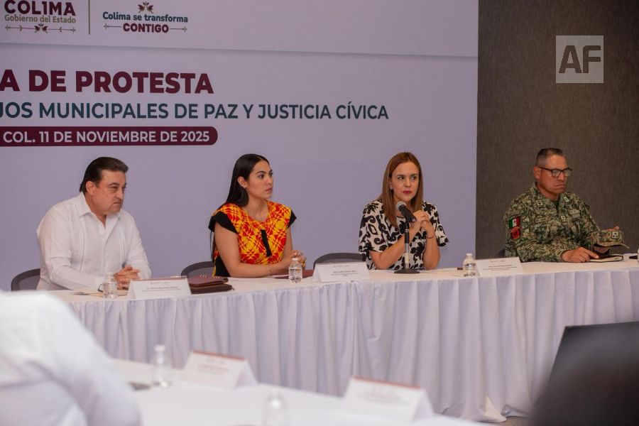 COLIMA.- La gobernadora de Colima, Indira Vizcaíno Silva, tomó protesta a integrantes del Consejo Estatal y Consejos Municipales de Paz y Justicia Cívica, este martes en el Complejo Administrativo; ahí, la mandataria expresó su confianza por el potencial de los esfuerzos que con estos organismos se ponen en marcha para abonar a la Estrategia Nacional de Seguridad que impulsa la presidenta de México, Claudia Sheinbaum Pardo.