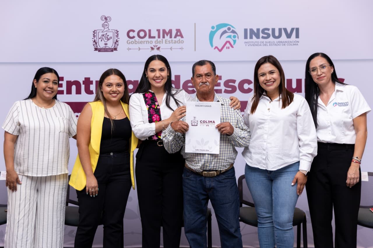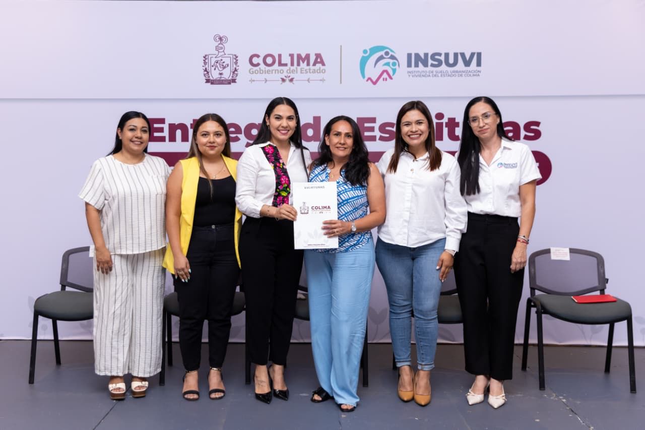 COLIMA.- La tarde de este jueves, la gobernadora Indira Vizcaíno Silva entregó escrituras como parte del Programa de Condonación de Saldos de casas del Instituto de Suelo, Urbanización y Vivienda del Estado de Colima (Insuvi) a 70 familias de la entidad, a quienes se les regularizó la situación de su inmueble; la mandataria dijo que para el Gobierno del Estado de Colima es un gusto entregar la certeza y la tranquilidad de su hogar.