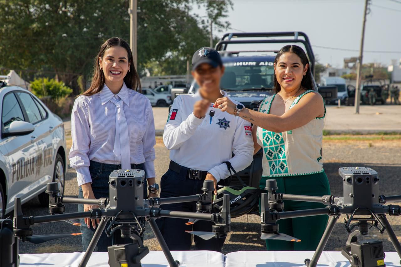 La mandataria estatal explicó que se trata de siete nuevas patrullas tipo pick-up y seis tipo sedán, fundamentales para el patrullaje y la respuesta operativa, así como equipo complementario que amplía la capacidad de vigilancia y presencia territorial: motocicletas, bici-patrullas, cuatrimotos y drones de vigilancia, que permitirán extender la cobertura operativa y mejorar el monitoreo desde el aire.