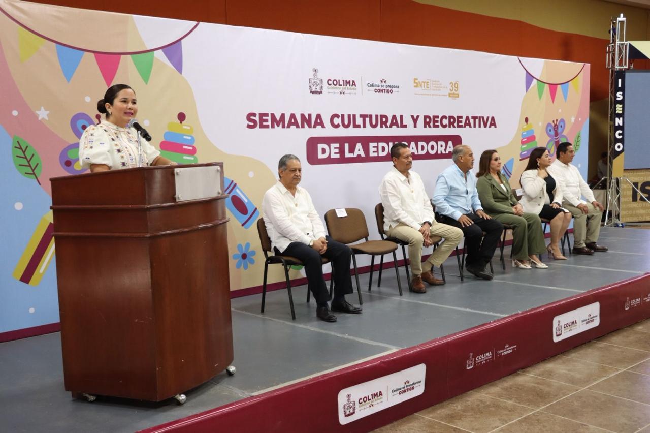 COLIMA.- En el marco del Día Social de la Educadora, la Secretaría de Educación y Cultura del Gobierno del Estado de Colima llevó a cabo el evento de reconocimiento a la función de las educadoras, realizado en el Isenco campus Cuauhtémoc, encabezado por el titular de la SEyC, Adolfo Núñez González, en representación de la gobernadora Indira Vizcaíno Silva.