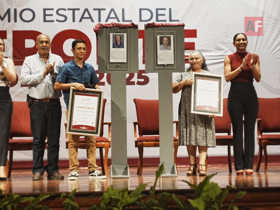 COLIMA.- El ciclista José Emilio Rodríguez Delgado, el balonmanista Manuel Rivas Zazueta, la deportista paralímpica Yaretzi Janeth Cristóbal Santana, la voleibolista Naomi Cruz Toledo y el entrenador de balonmano Manuel Alejandro Chávez Valencia, recibieron la tarde de este miércoles en el teatro Hidalgo, de parte del Gobierno del Estado de Colima, el Premio Estatal del Deporte 2025, galardón otorgado a las y los mejores atletas estatales, en reconocimiento a sus logros durante el periodo de octubre 2024-2025.
