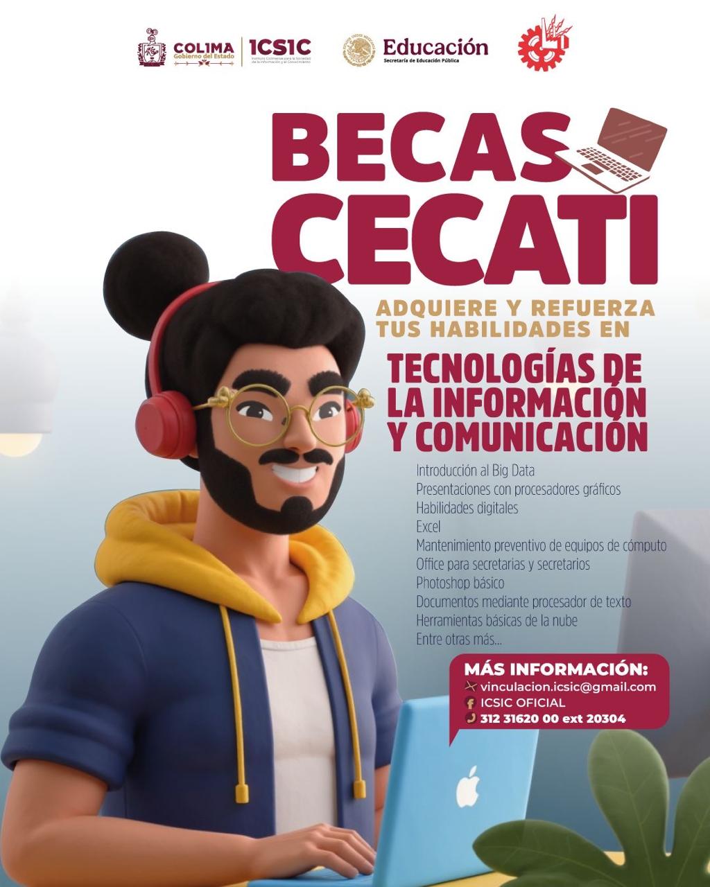 COLIMA.- Para contribuir al desarrollo de una sociedad más informada, preparada e incluyente, el Gobierno del Estado de Colima, a través del Instituto Colimense para la Sociedad de la Información y el Conocimiento (ICSIC), impulsa una estrategia de colaboración con los Centros de Capacitación para el Trabajo Industrial (Cecati) en la entidad, mediante la cual se otorgan becas del 50% de descuento en cursos de formación relacionados con las tecnologías de la información y la comunicación.