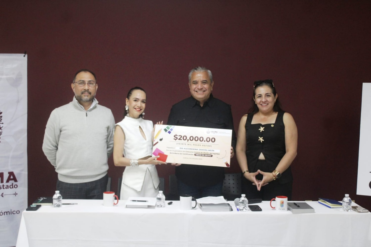 Se entregó el reconocimiento oficial a la ganadora, Isis Alejandrina Zamora, cuyo diseño representará a Colima en México y el mundo, como un símbolo del talento y la identidad productiva de nuestra gente.