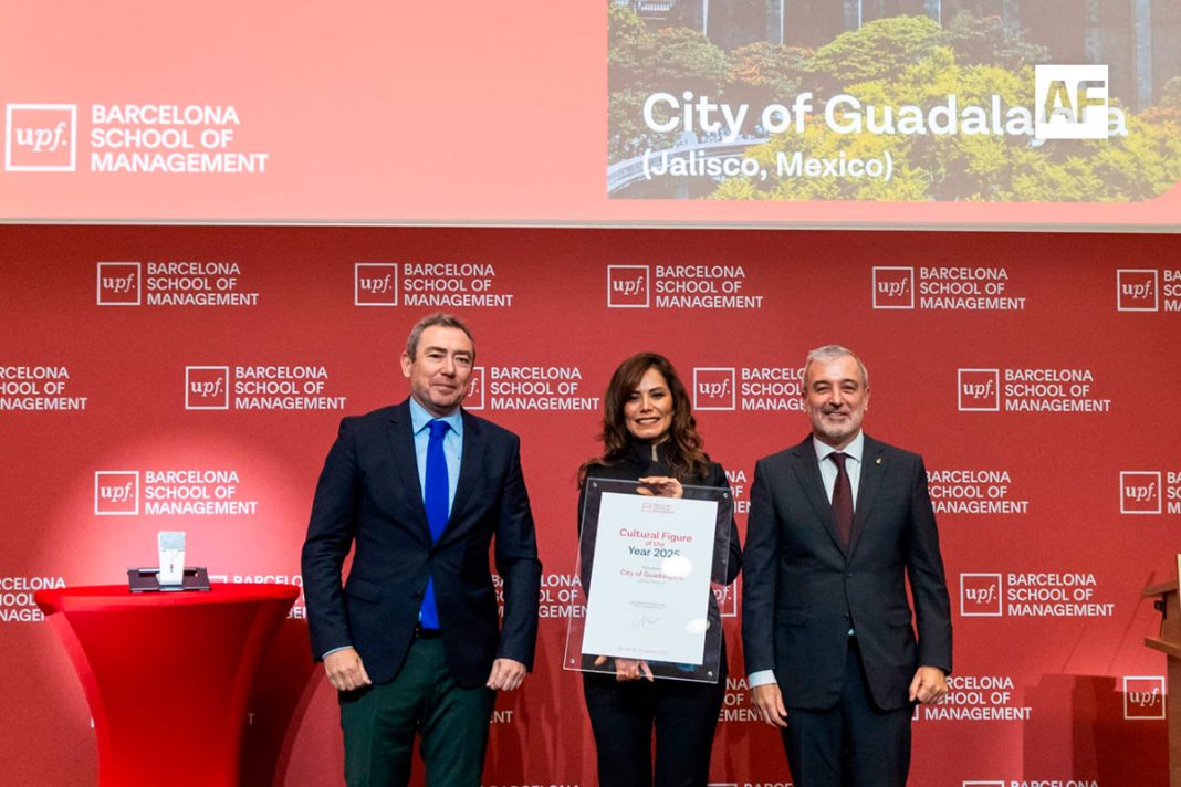 Con la presencia de autoridades políticas, empresarios y representantes del Consulado de México en Barcelona, la presidenta Vero Delgadillo recibió el reconocimiento de manos de José M. Martínez-Sierra, director general de la UPF-BSM Barcelona School of Management, y de Jaume Collboni, alcalde de Barcelona.