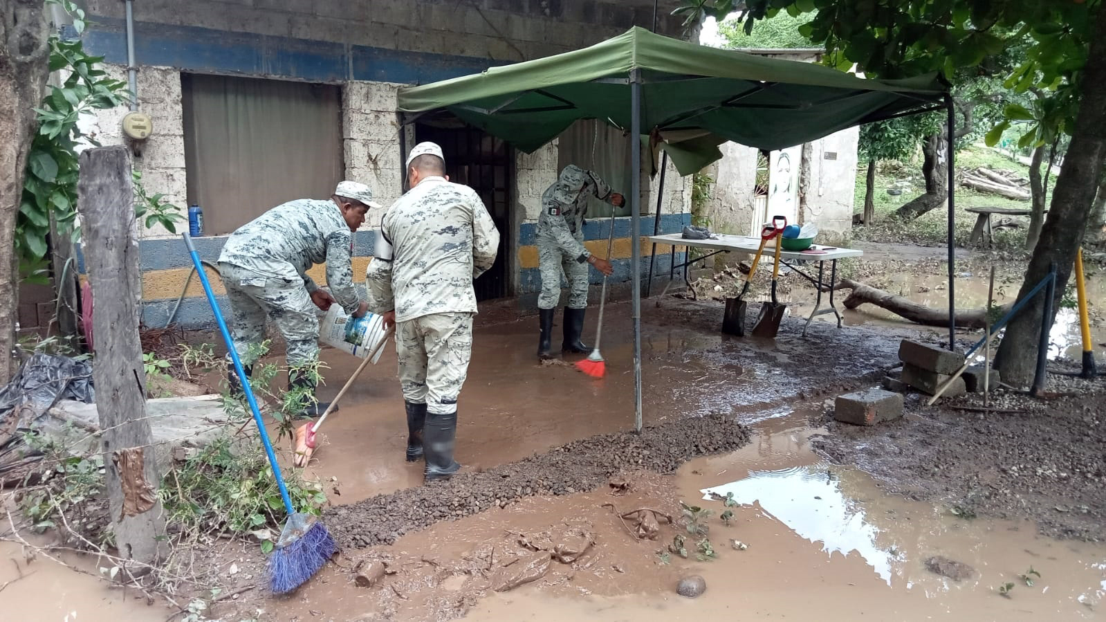 NAYARIT.- Integrantes de la Guardia Nacional (GN) aplican el Plan de Asistencia a la Sociedad en casos de Emergencia (Plan GN-A), ante las intensas lluvias registradas en las últimas horas.
