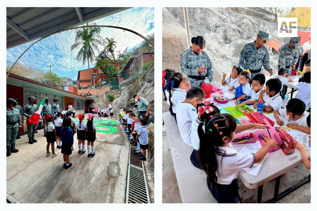 MANZANILLO.- Con banderas desplegadas y una notable energía en las aulas, elementos de la Guardia Nacional recorrieron este lunes diversas escuelas de Colima para convivir con los estudiantes. Las visitas llegaron a las primarias “Adolfo López Mateos” y “Revolución” en el municipio de Armería, así como al jardín de niños “Beatriz Cortés” en Manzanillo, donde el personal uniformado cambió las tareas de vigilancia por una jornada de proximidad y formación ciudadana.