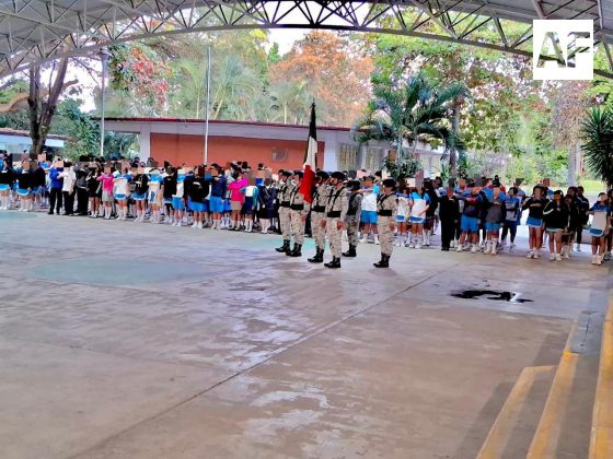 COLIMA.- Con el objetivo de fortalecer el respeto a los valores nacionales y promover la participación social desde edades tempranas, la Guardia Nacional continúa impulsando el Plan Cívico-Social en los planteles educativos de los diferentes municipios del estado de Colima, como lo realizó este lunes en Manzanillo, Armería, Tecomán, Cuauhtémoc, Coquimatlán y en la ciudad capital.