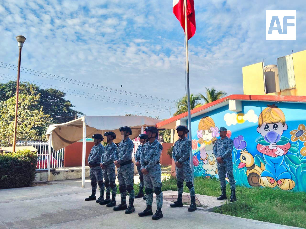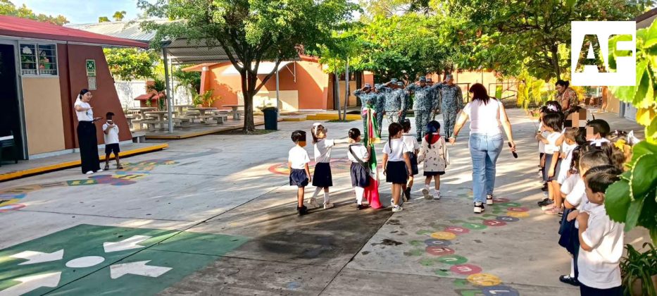 Personal de esta corporación del Gobierno de México participó en las ceremonias cívicas en el jardín de niños ‘Alberto Larios’ de Manzanillo, la primaria ‘Revolución’ en Armería, en el jardín de niños ‘Miguel Gómez Sandoval’ en Tecomán, la secundaria ‘José Vasconcelos’ de Colima, en el municipio de Cuauhtémoc, así como en el Ayuntamiento de Coquimatlán.