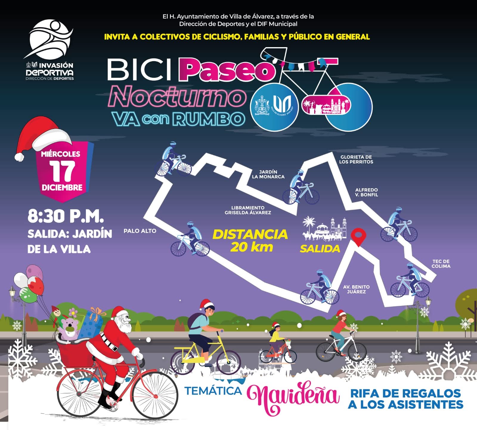 VILLA DE ÁLVAREZ.- Con un recorrido por las principales avenidas de Villa de Álvarez, este miércoles 17 de diciembre la comunidad ciclista celebrará las fiestas decembrinas, con el Bici Paseo Va con Rumbo, cuya temática será navideña.