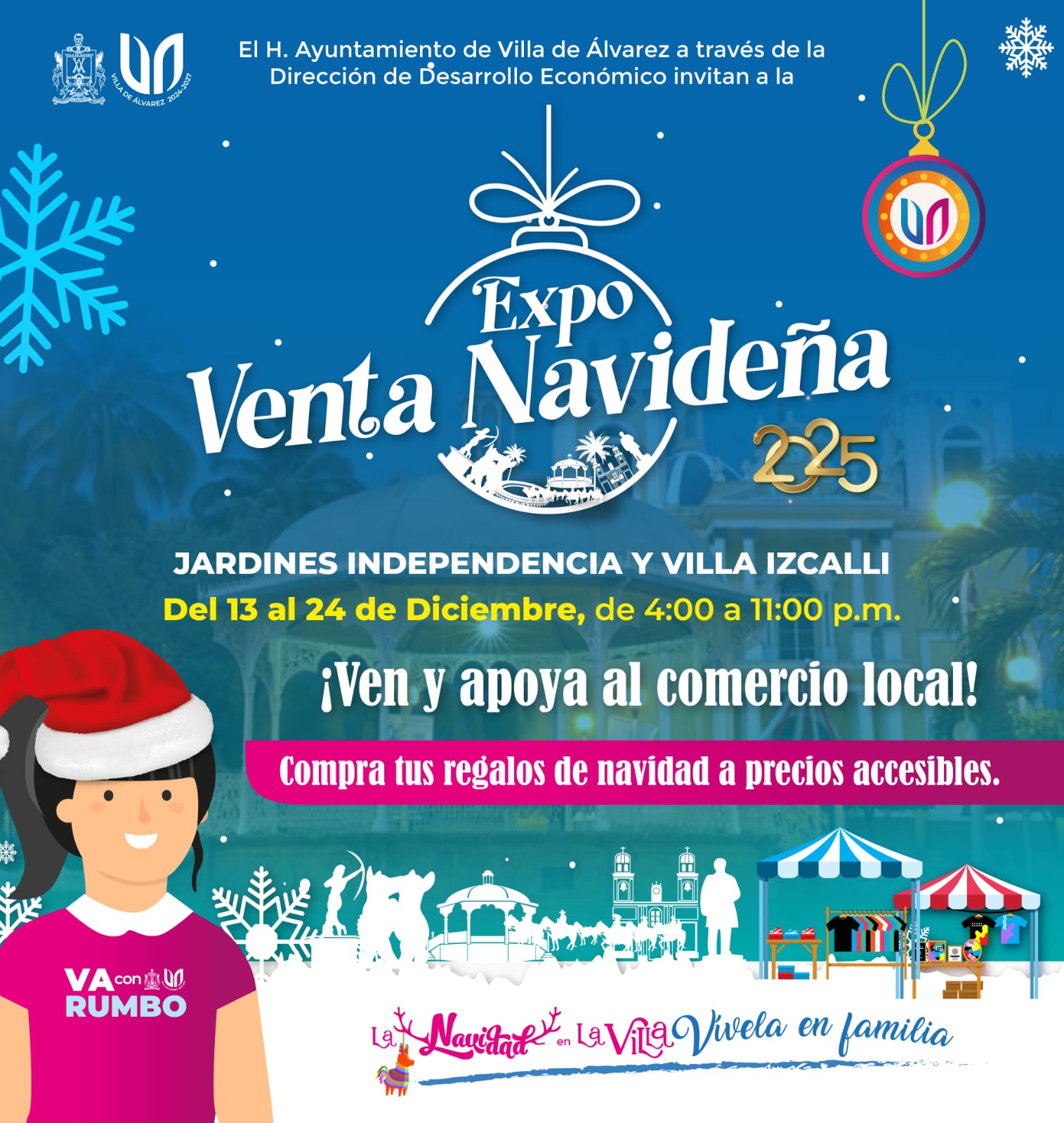 VILLA DE ÁLVAREZ.- Con el objetivo de apoyar a los comercios locales y acercar a la población la venta de productos para la temporada, el Gobierno Municipal de Villa de Álvarez, a través de la Dirección de Desarrollo Económico, celebrará la Expo-Venta Navideña 2025, donde participarán comercios y emprendedores de Villa de Álvarez.