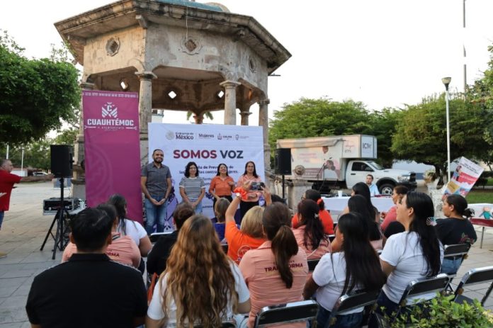 Cuauhtémoc.- El Gobierno del Estado de Colima, a través del Instituto Colimense de las Mujeres (ICM) en coordinación con el Ayuntamiento de Cuauhtémoc y la Junta Municipal de El Trapiche, llevó a cabo la tarde de este lunes la Feria Informativa y de Servicios ‘Somos Voz’ en esta comunidad de El Trapiche.