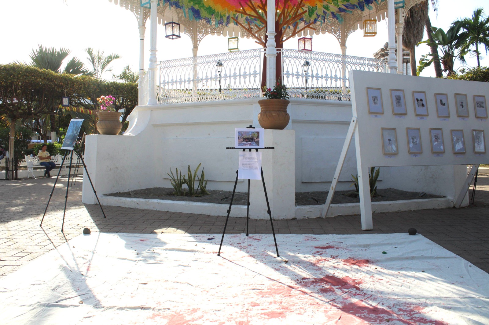 Comala.- Estudiantes del quinto cuatrimestre de la carrera de Artes y Gestión Cultural de la Universidad Intercultural de Colima (UIC) presentaron la exposición del taller experimental e introducción al grabado, en el jardín principal de Comala, en el marco de la ‘Feria del Ponche, Pan y Café 2025’, inaugurada por la presidenta municipal de Comala, Daniela Orozco Pineda.