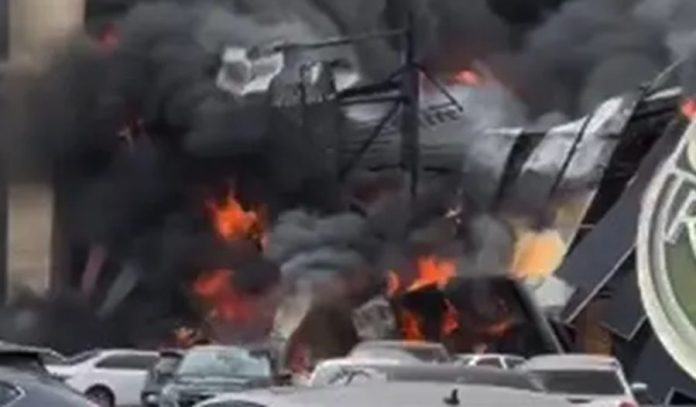 Sinaloa.- Un fuerte incendio se registró hoy en la ciudad de Culiacán, Sinaloa, afectando el Casino Royal Park ubicado dentro de la Plaza Cinépolis. Según reportes preliminares, el fuego se originó alrededor de las 11:00 a.m. y se extendió rápidamente, consumiendo por completo las instalaciones del casino y el cercano Trampolín Park.