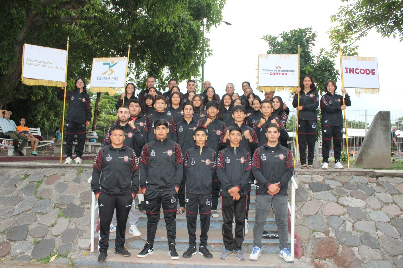 El abanderamiento se celebró en la sala de juntas del Instituto, ante la presencia de Iván Larrondo Tamayo, jefe del Departamento de Nacionales Conade, así como las y los deportistas, entrenadores, madres y padres de familia, donde se entregó a Mariana Puente López el estandarte del Incode; a Yulenny Solís Cobián el de la Comisión Nacional de Cultura Física y Deporte (Conade); a Bielka Santana Bautista el del Gobierno de Colima y a Bryseida Ibarra Gómez el de la Secretaría de Educación y Cultura. Además, se otorgaron uniformes deportivos a quienes participarán en esta competencia.