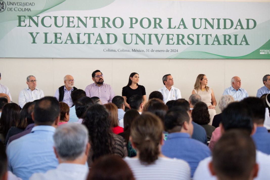 COLIMA.- La gobernadora Indira Vizcaíno Silva acudió al ‘Encuentro por la Unidad y Lealtad Universitaria’, encabezado por el rector de la Universidad de Colima, Christian Torres Ortiz Zermeño; ahí, la mandataria reconoció que tanto este evento como la institución han ido cambiando en las últimas tres décadas e invitó a las y los presentes a seguir con esa transformación de la máxima casa de estudios.